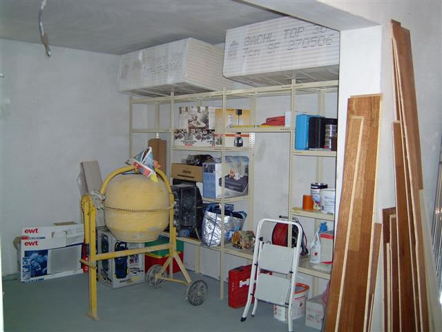 Auch Regale im Keller sind schon aufgestellt